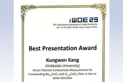 The 29th International Workshop on Oxide Electronics (iWOE-29) Best Presentation Award Kungwan Kangさん(太田研)