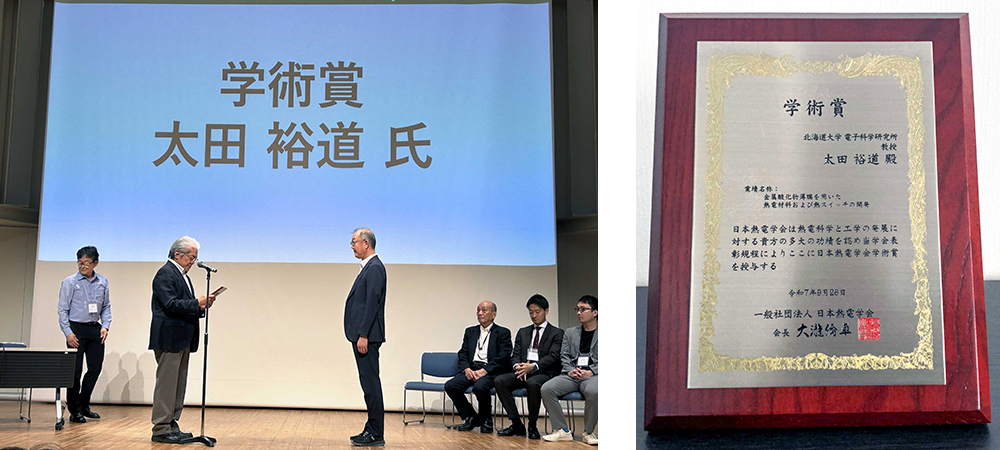Professor OHTA Hiromichi of Research Institute for Electronic Science has been awarded the 2025 Academic Award by the Thermoelectric Society of Japan.