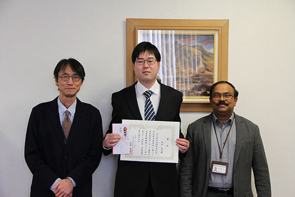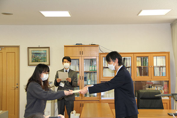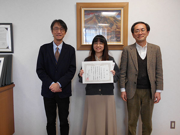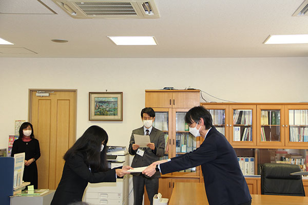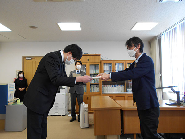 なお,授与式は令和4年2月14日(月)に電子科学研究所所長室にて執り行われました。