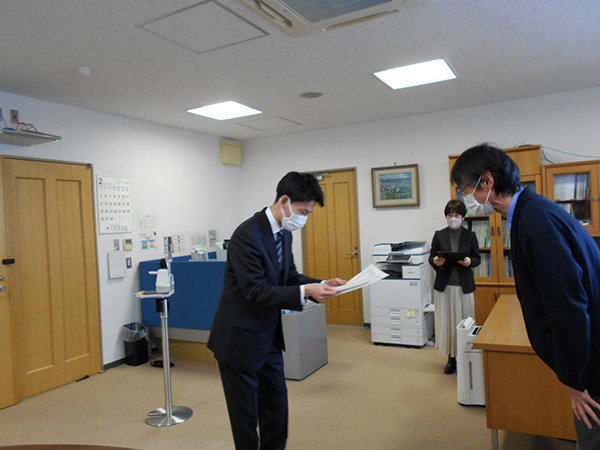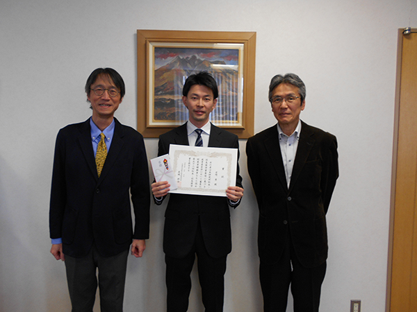 なお,授与式は令和5年2月10日(金)に電子科学研究所所長室にて執り行われました。※岩﨑 博士研究員 賞状授与
