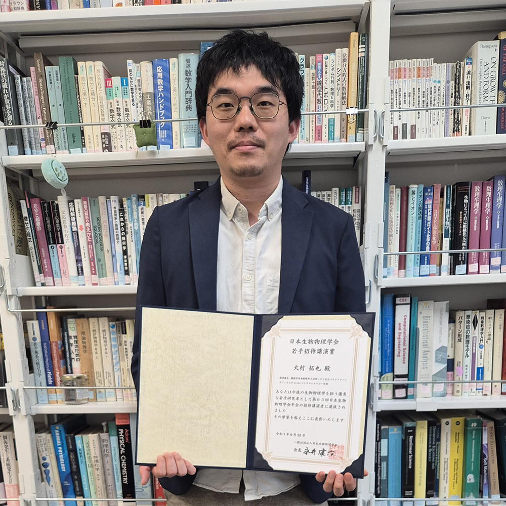 知能数理研究分野の大村拓也助教が日本生物物理学会の若手招待講演賞を受賞しました。