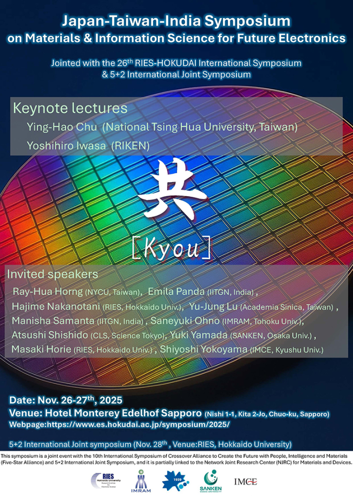 2025年11月26日(水)から11月27日(木)まで、ホテルモントレエーデルホフ札幌にて、電子科学研究所国際シンポジウム”共”[kyou]を開催します。