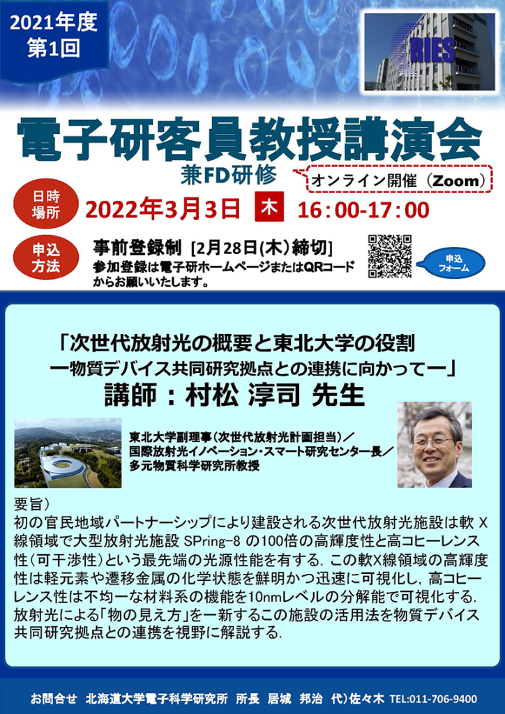 北海道大学電子科学研究所 所長 居城 邦治 代)佐々木 TEL:011-706-9400
