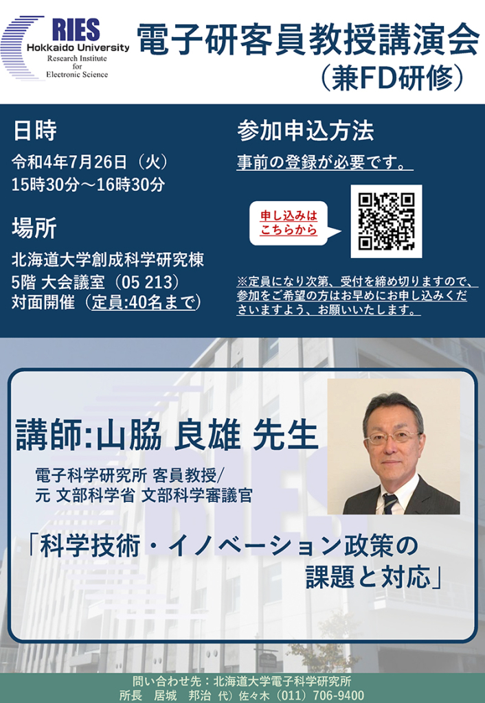 北海道大学電子科学研究所 所長 居城 邦治 代)佐々木 TEL:011-706-9400