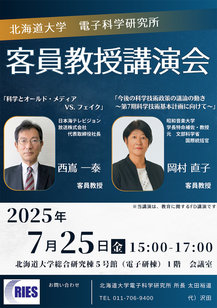 北海道大学電子科学研究所 所長 太田裕道 代)沢田 TEL:011-706-9400